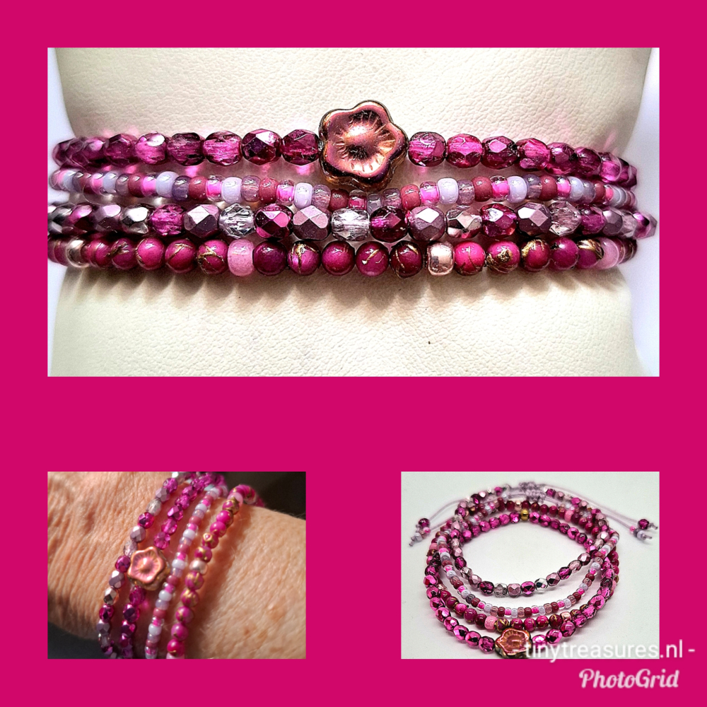 boho armband roze paars fuchsia goud