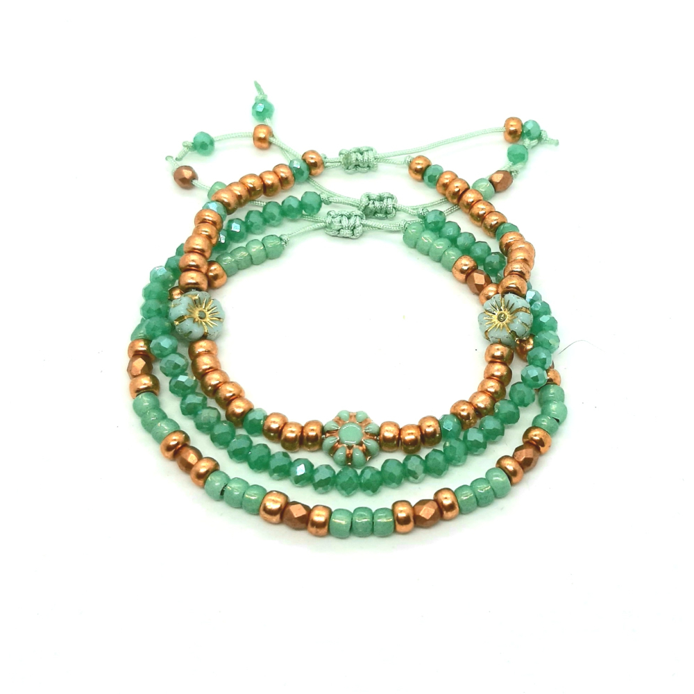 van glas facetkralen, tjechische bloemkralen en miyuki rocailles