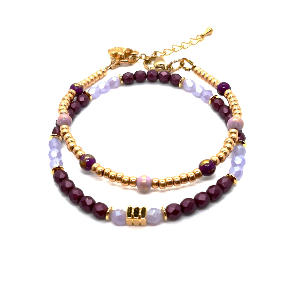 armbandsetje goud/ paars/ lila