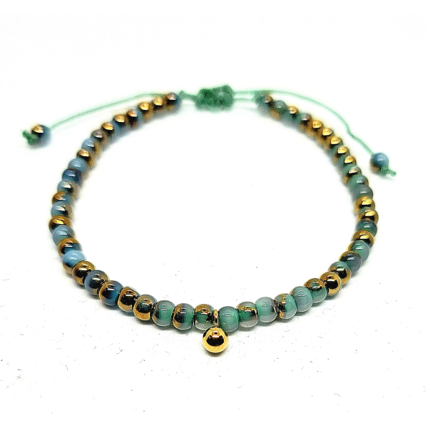 schattig schuifarmbandje van 2 kleurige glaskralen van 4mm
