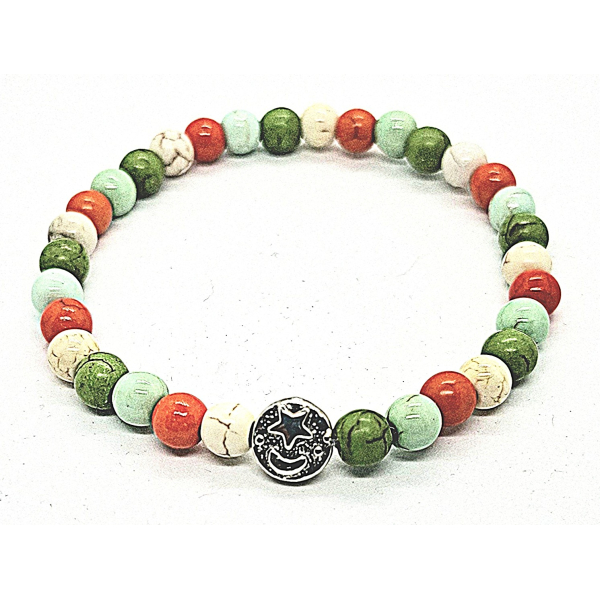 bohemian armband mintblauw/ olijfgroen/ oranje/ wit