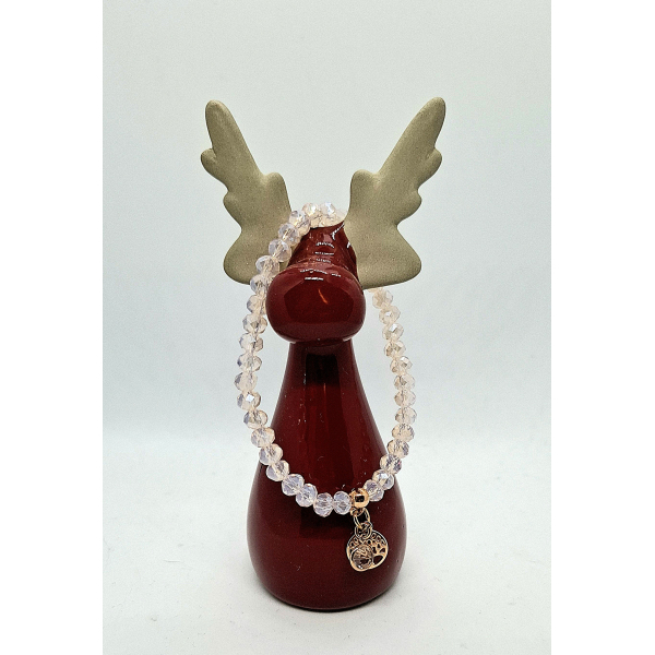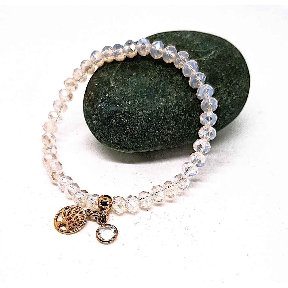 van 6x4mm facet glaskralen met 2 roségouden bedels waarvan 1 "familytree" bedel