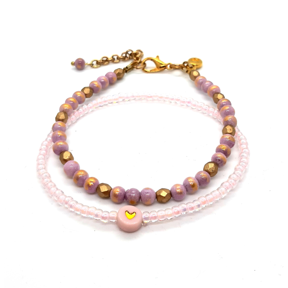 lila armbanden set met rosé goud