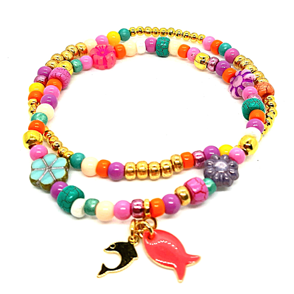 set van 2 elastische armbanden met bedels
