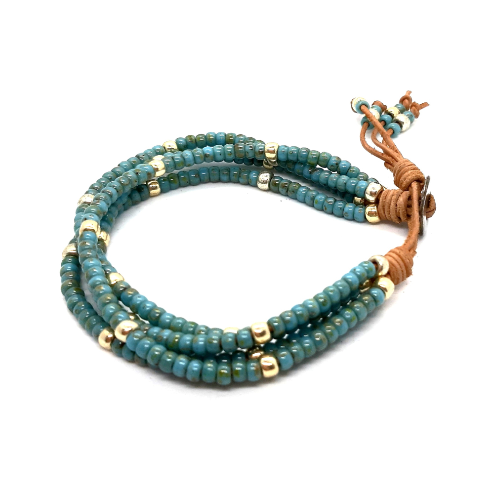 met 3mm miyuki rocailles op 1mm leerkoord