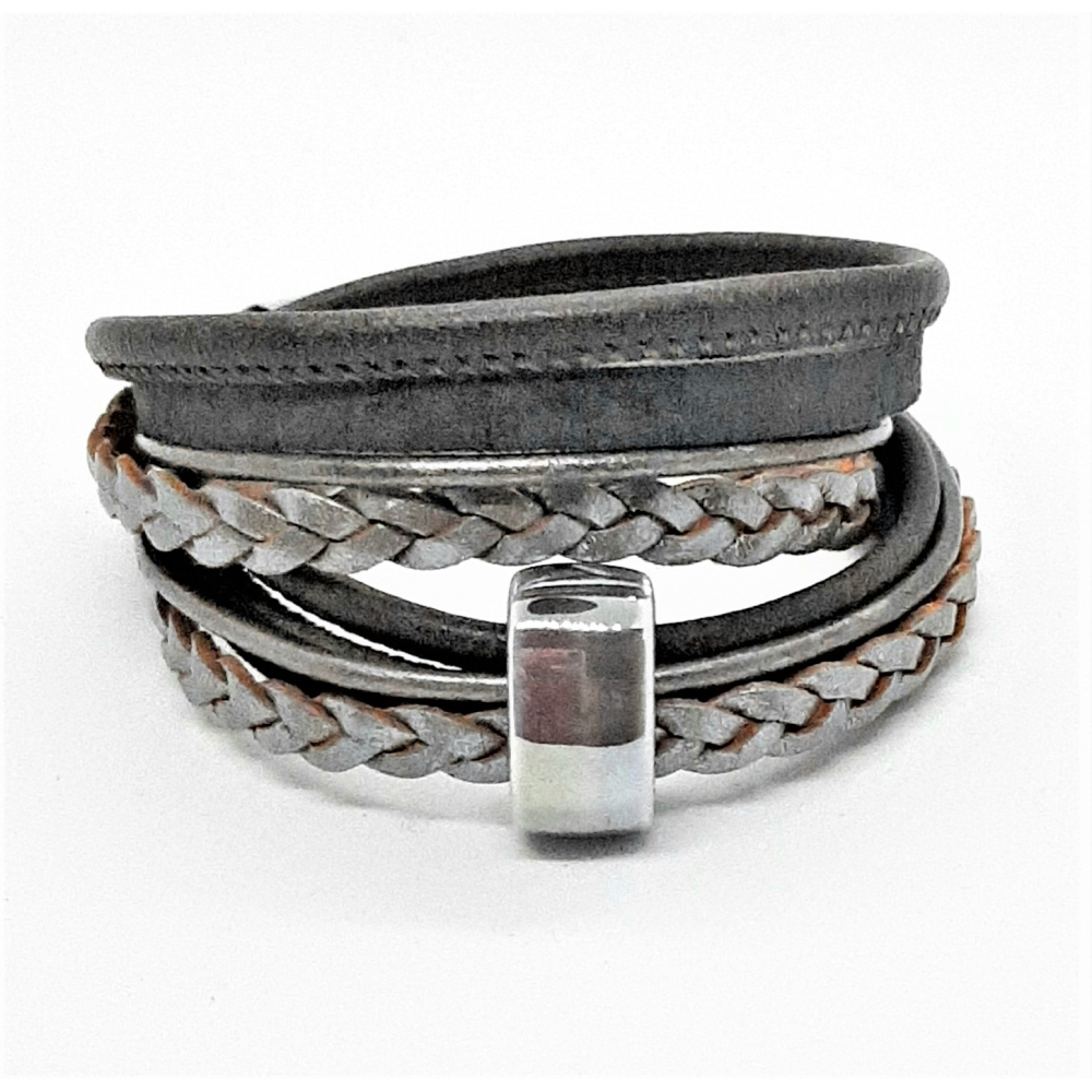 Leren grijze wikkelarmband met mooie keramiek kraal