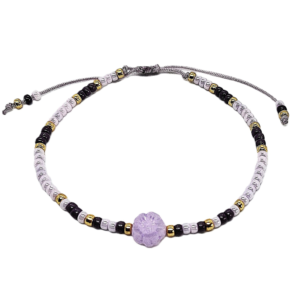 lila paars schuifarmbandje met bloem