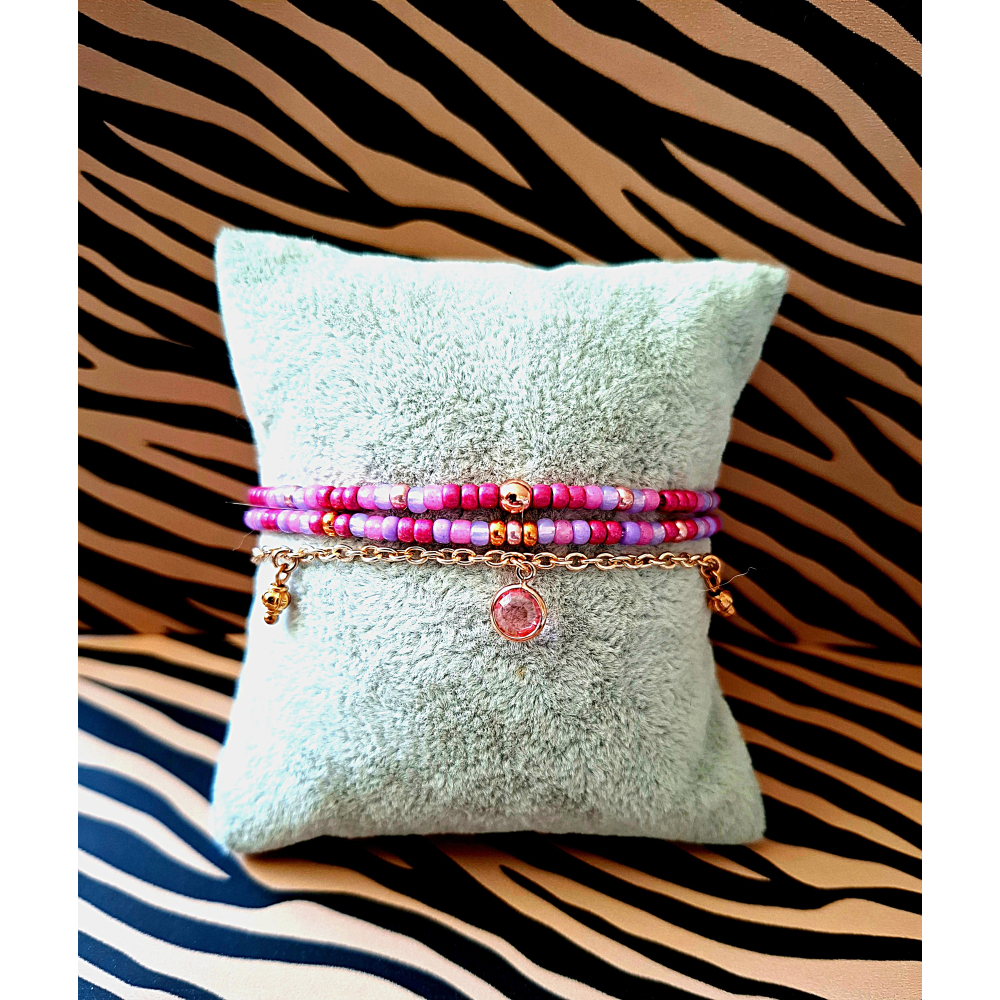 miyuki setje in zacht fuchsia/ lila en roségoud