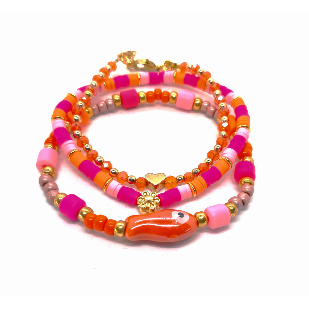 2x elastisch met verschillende soorten kralen zoals katsuki, miyuki, dq goud en een keramiek viskraal