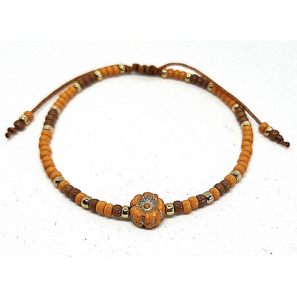 oranje bruin schuifarmbandje met bloem