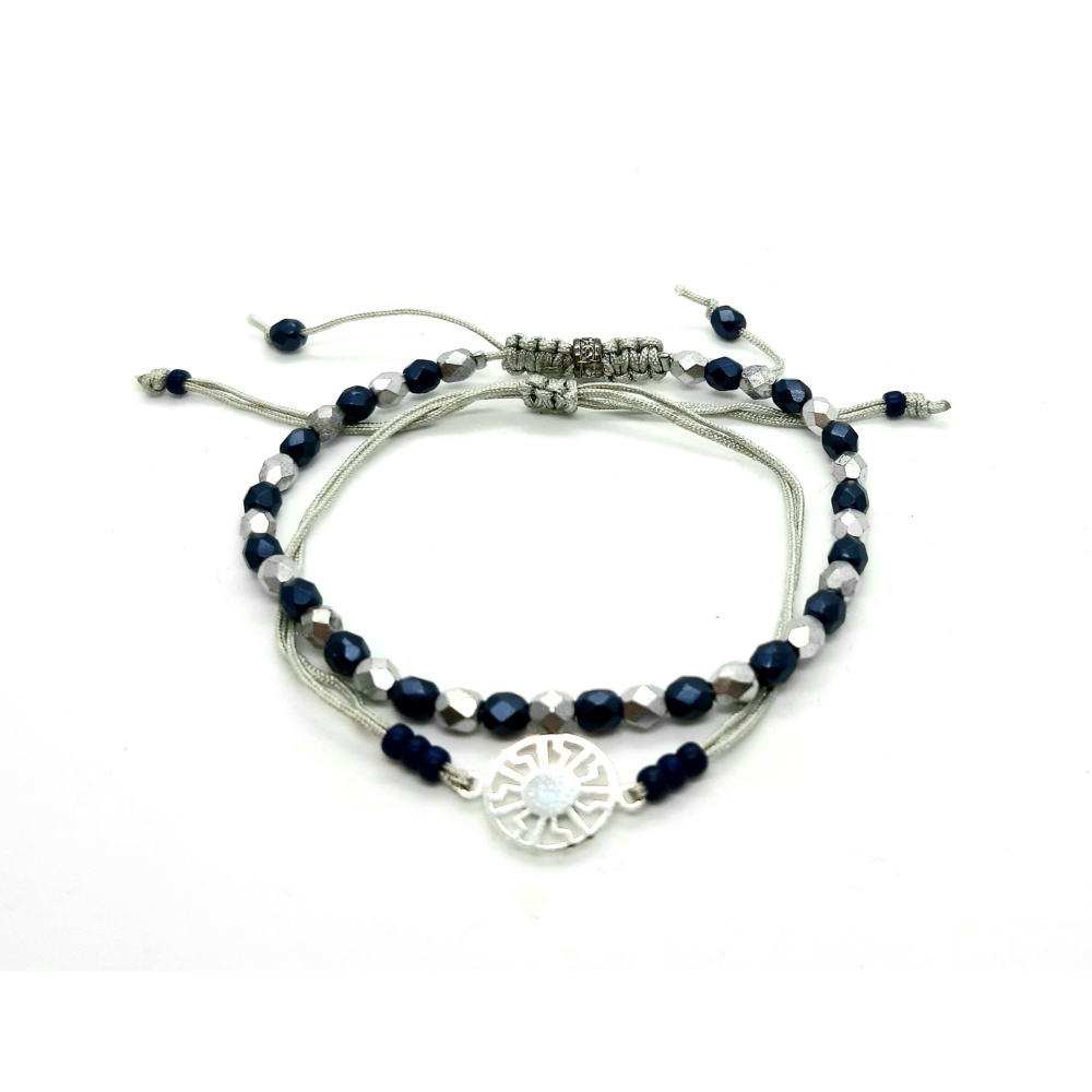 schuifarmband setje donkerblauw/ zilver