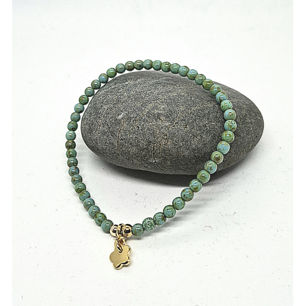 turquoise groene natuursteen armbanden set met goud dolfijntje